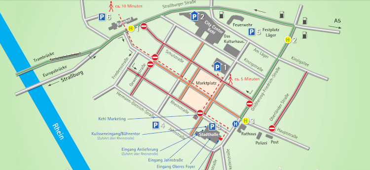 Die Stadthalle Kehl liegt in der Kehler Innenstadt in unmittelbarer Nähe zum Marktplatz. Für Sie bedeutet das eine schnelle und unkomplizierte Anreise. Egal ob zu Fuß, mit den öffentlichen Verkehrsmitteln oder dem PKW – wir sind von überall her gut erreichbar.